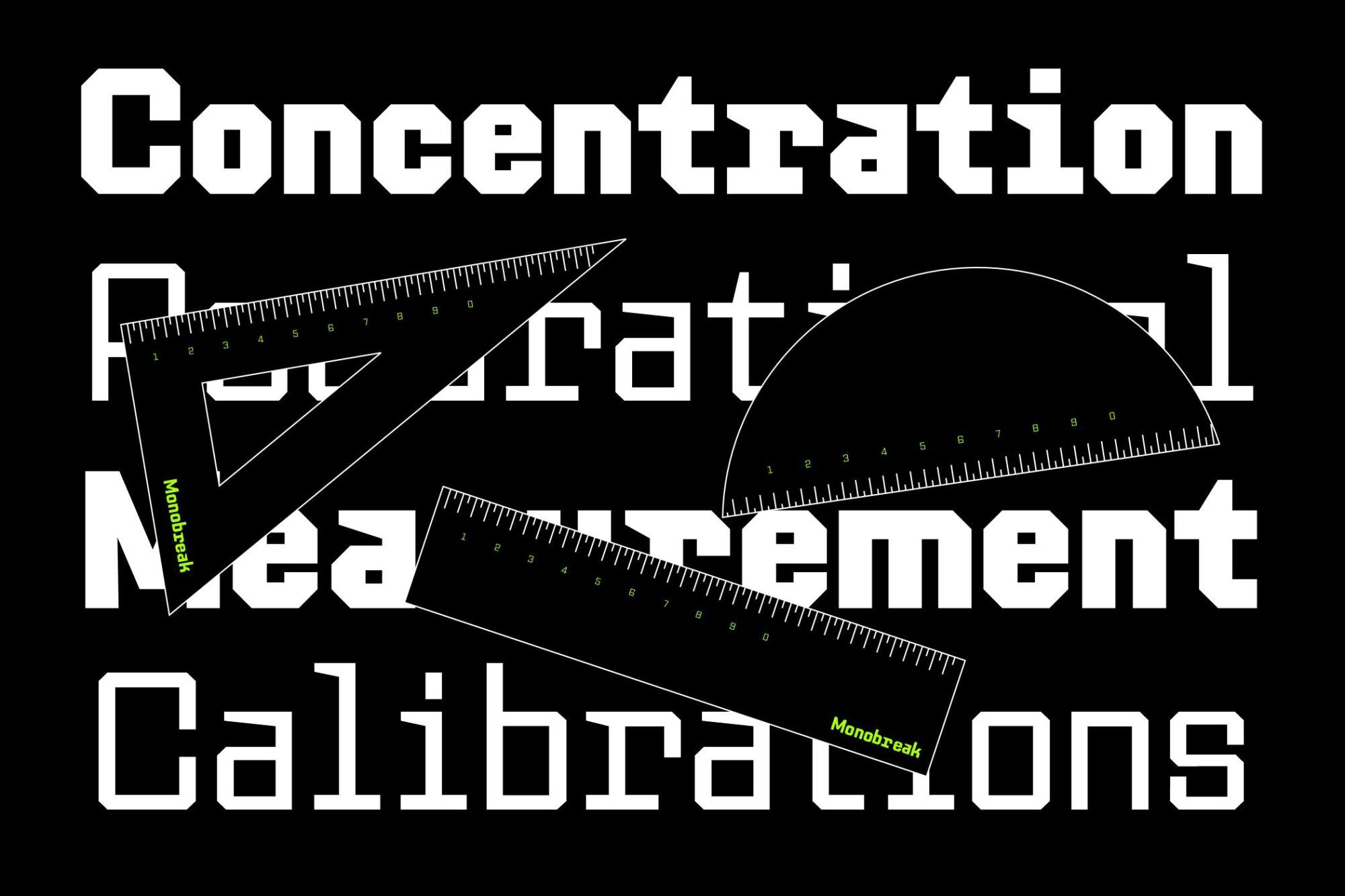 Featuring five weights from Thin to Bold Monobreak offers exceptional versatility for a wide range of uses, from digital interfaces and modern branding to minimal editorial layouts. With its consistent rhythm and sleek construction, Monobreak delivers a sense of stability, clarity, and technical elegance in every line of text.